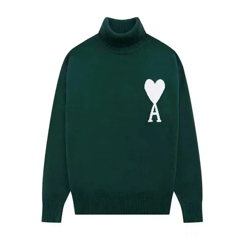 AMIPARIS Intarsia Knit High-Neck Pullover Solid Color Wool Sweater-5150