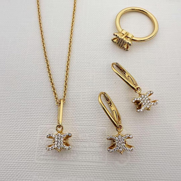 Home > Celine Gold Arc de Triomphe Full Diamond Logo Necklace Earrings-3736