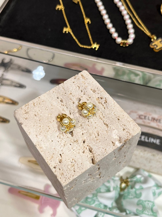 Celine Pearl Gold Arc de Triomphe Earrings-3897