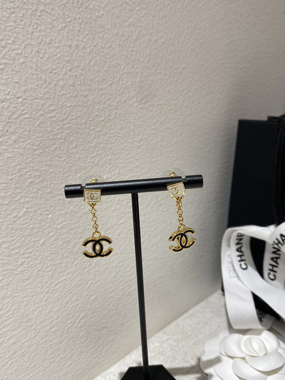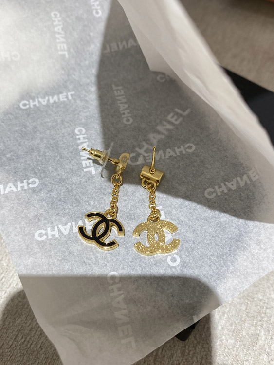 Chanel black and white enamel square double C earrings-3952