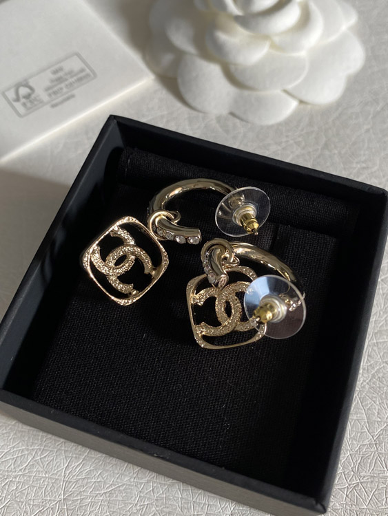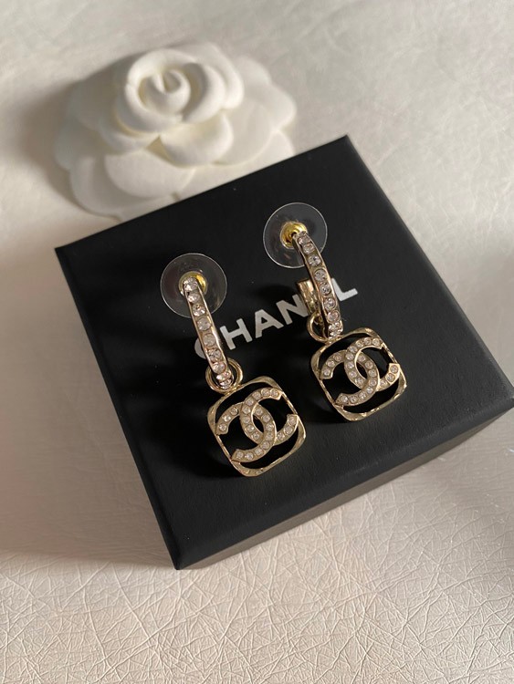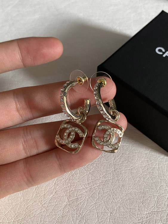 Chanel hollow rhinestone square earrings-3951
