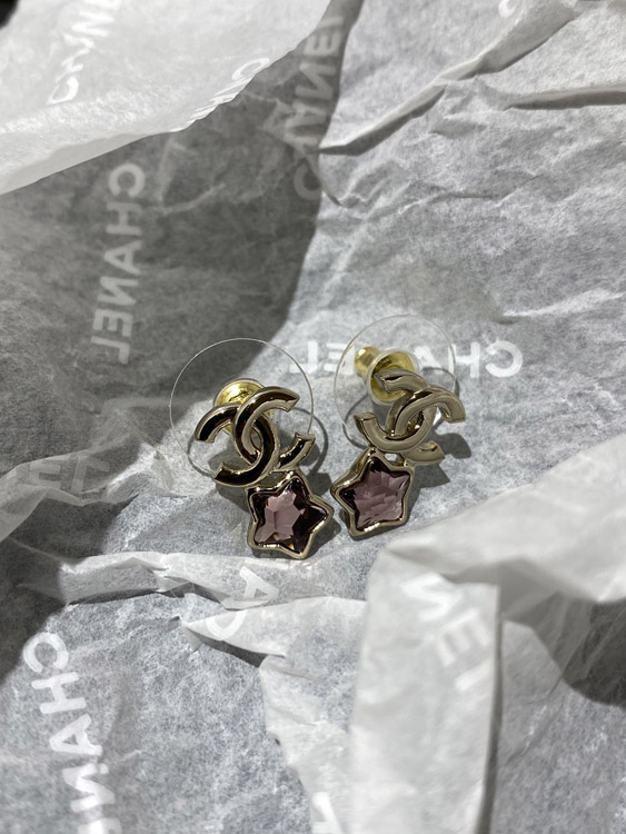 Chanel pink star light gold earrings-3929