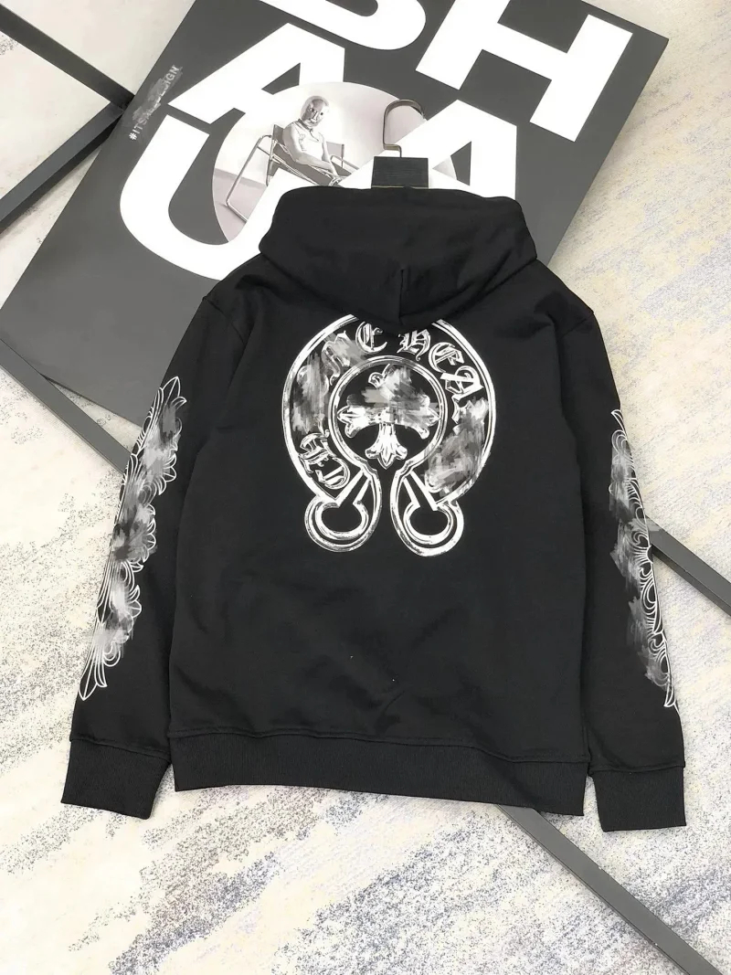 Chrome Hearts New Pure Cotton Cross American Horseshoe Printed Hooded Loose Sweatshirt-2524