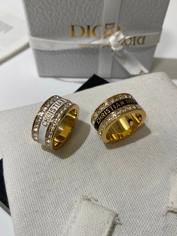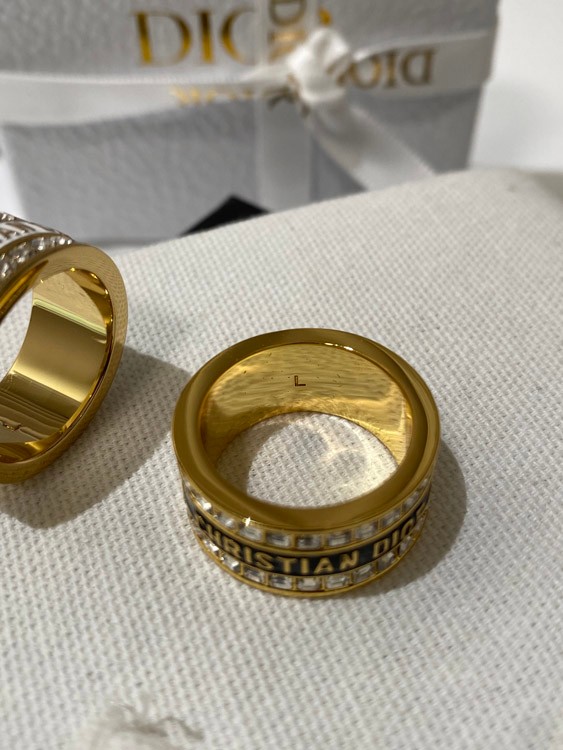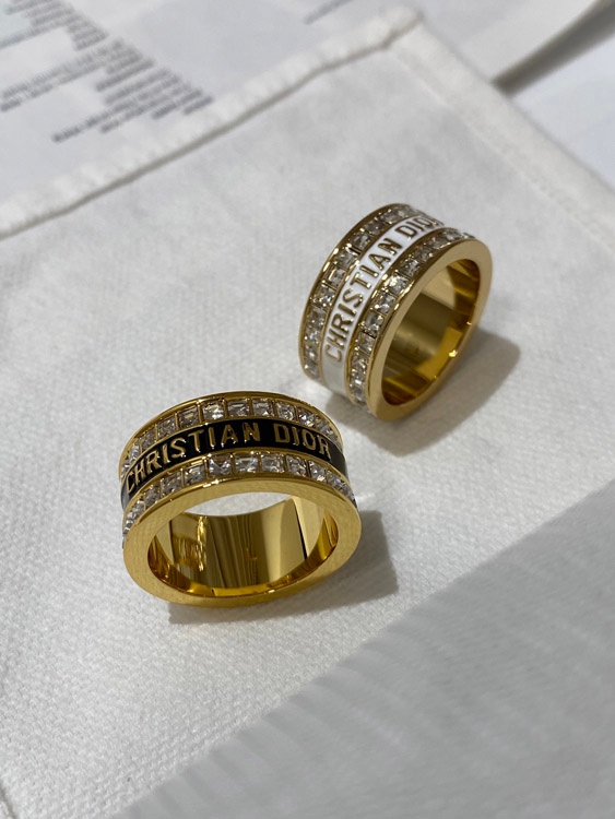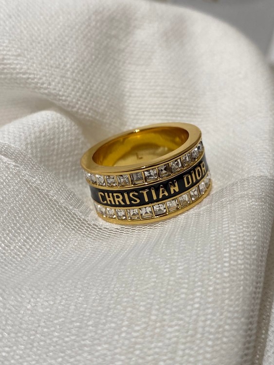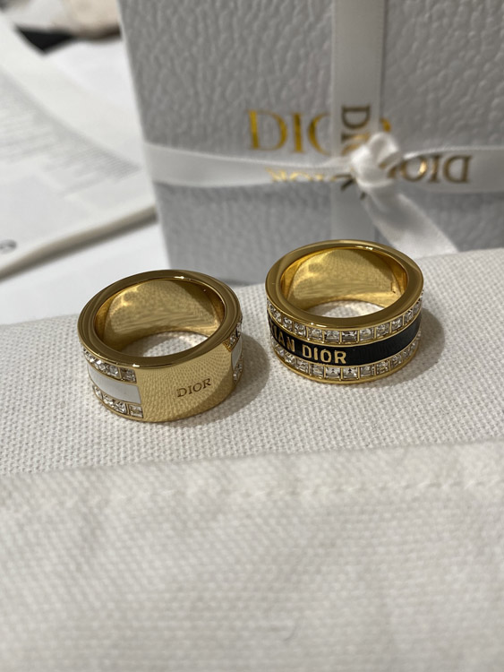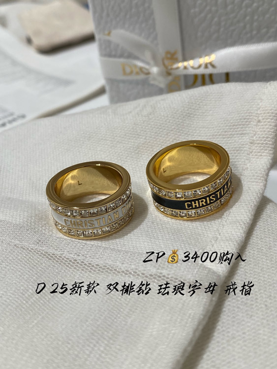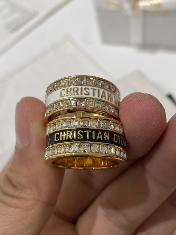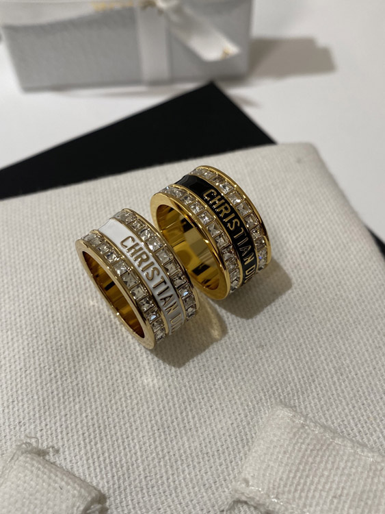 Dior double row diamond enamel letter ring-3953