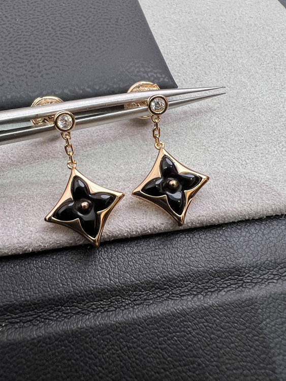 Louis Vuitton LV Black Onyx Three-Dimensional Flower Earrings-4032