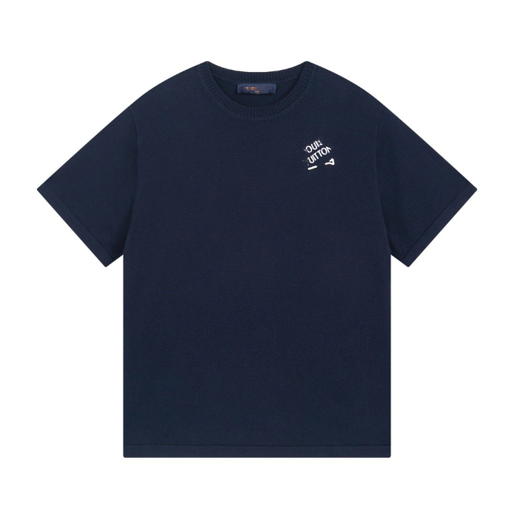 Louis Vuitton LV knitted checkerboard pattern letter jacquard casual loose short-sleeved T-shirt-5308