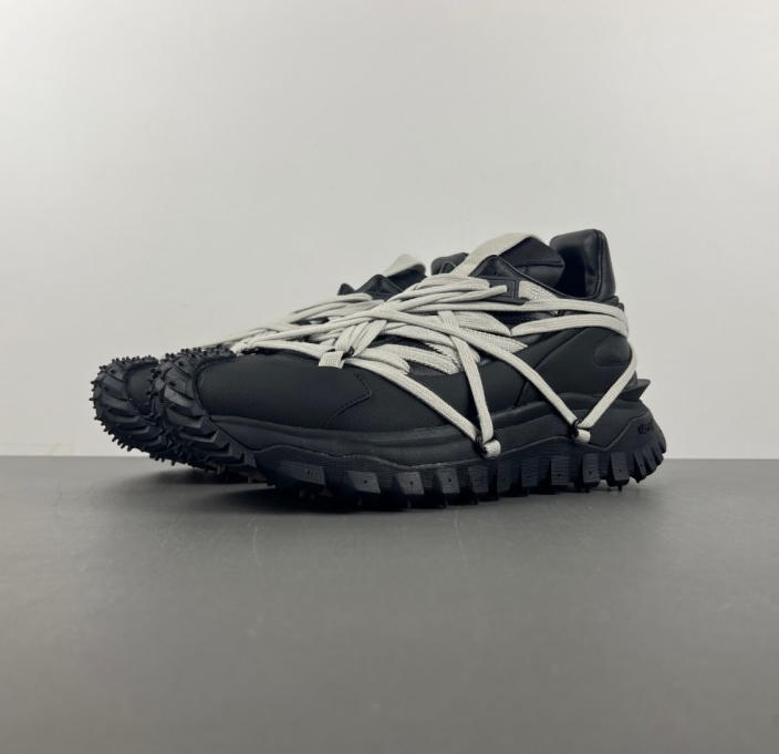 Moncler x RICK OWENS Trailgrip Megalace Leather Round-Toe Elastic Low-Top Casual Shoes-5115