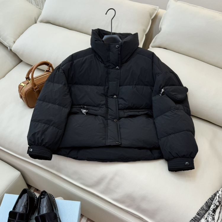 Prada new triangular bag design white duck down and goose down short puffer jacket-5340