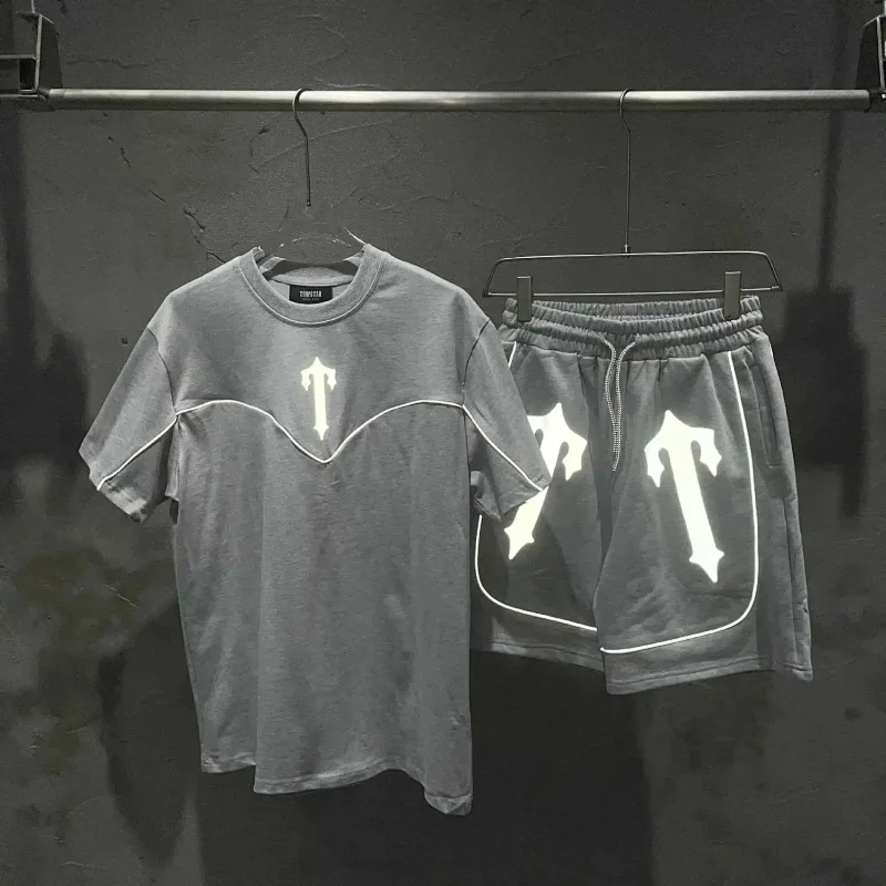 Trapstar Sword Reflective Print Lettering Short Sleeve T-Shirt Shorts Set-2827
