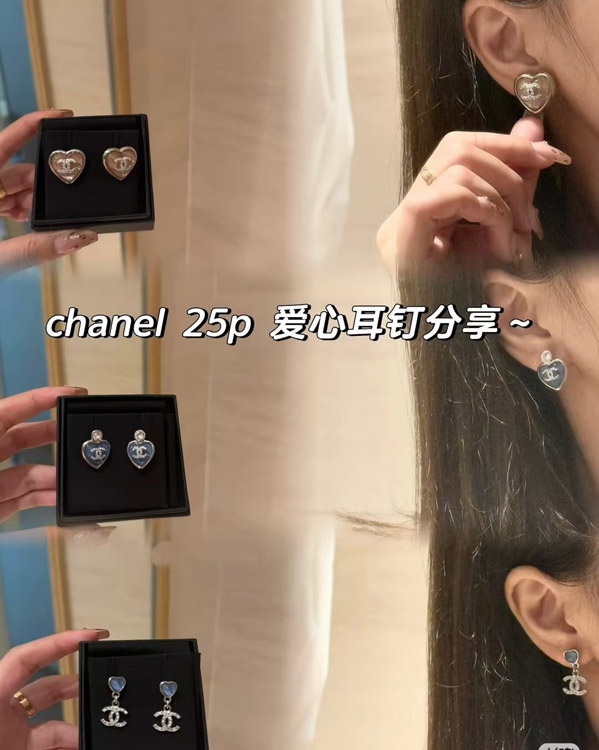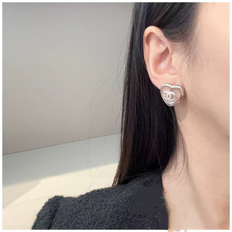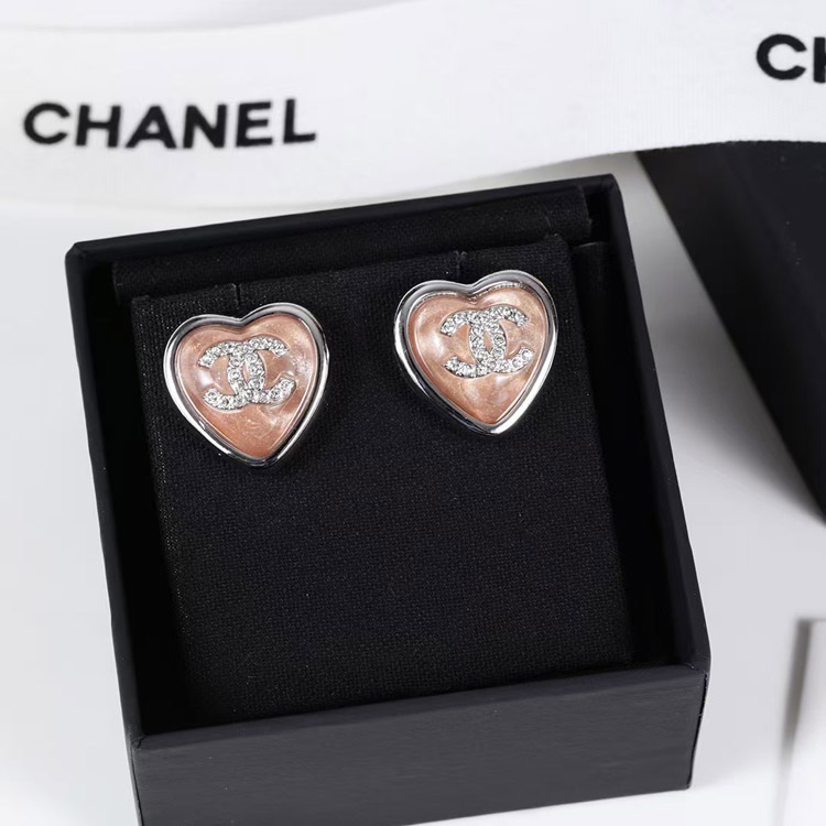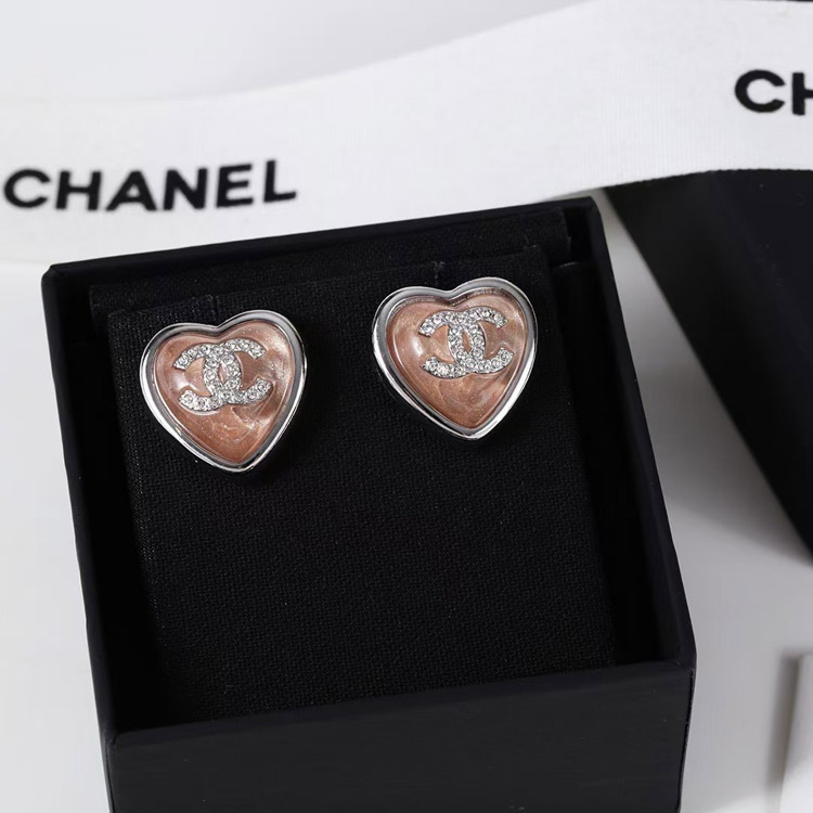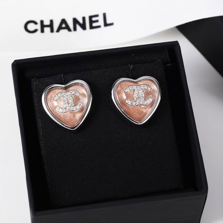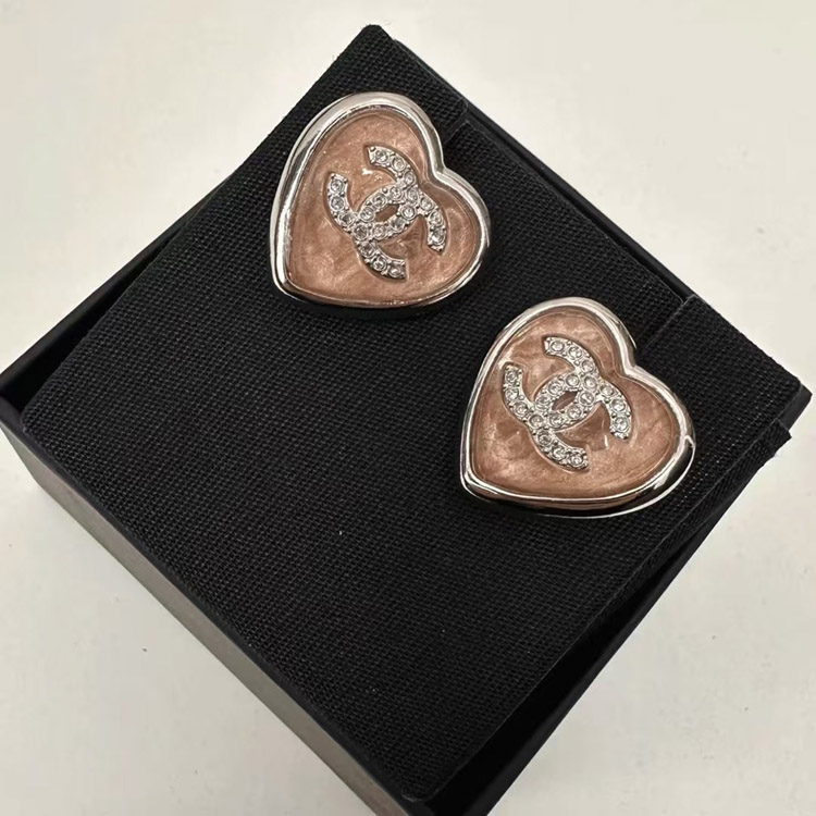 Chanel earrings rhinestone double c pink blue love earrings-3746
