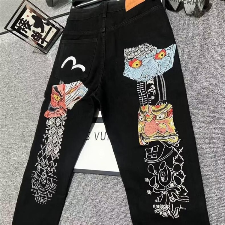 EVISU new straight-leg embroidered denim jeans-5867