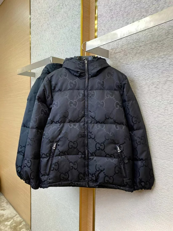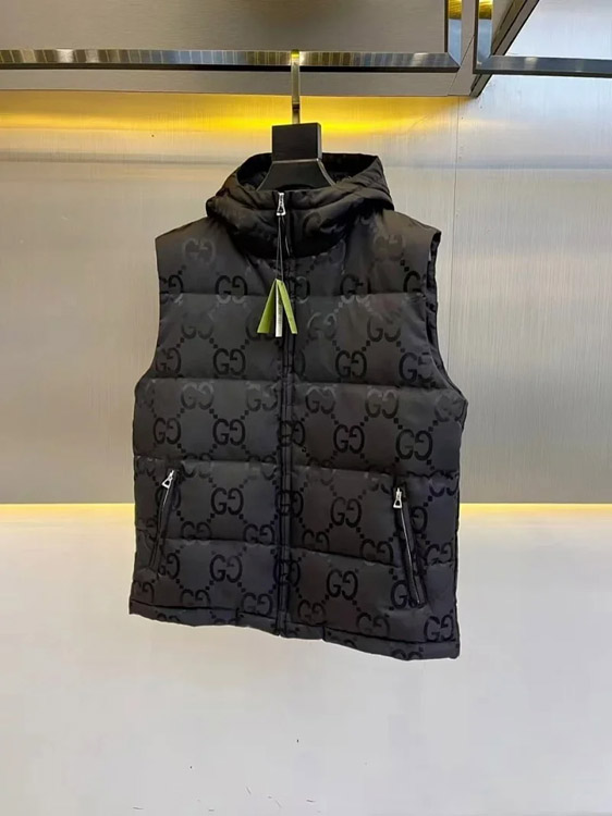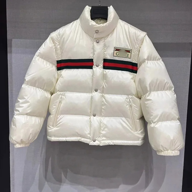 GUCCI Logo label striped webbing quilted detachable sleeves aviator down jacket-4265