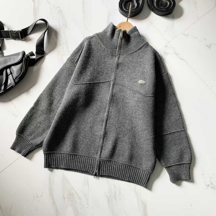Lacoste simple stand-collar zip-up knitted cardigan jacket-5893