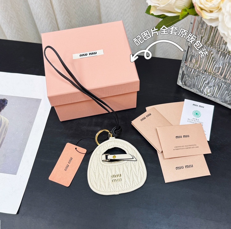 Home > MIIUMIU letter leather embroidered bag hanging ornaments-3554