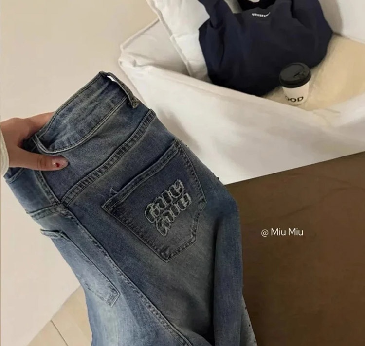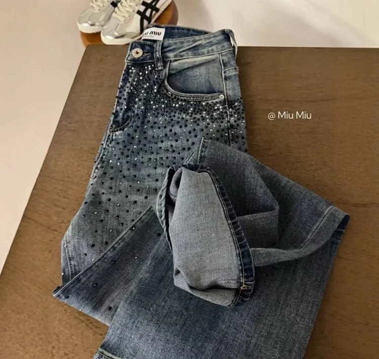 Home > Miu Miu's new starry sky heavy rhinestone straight leg jeans-4929