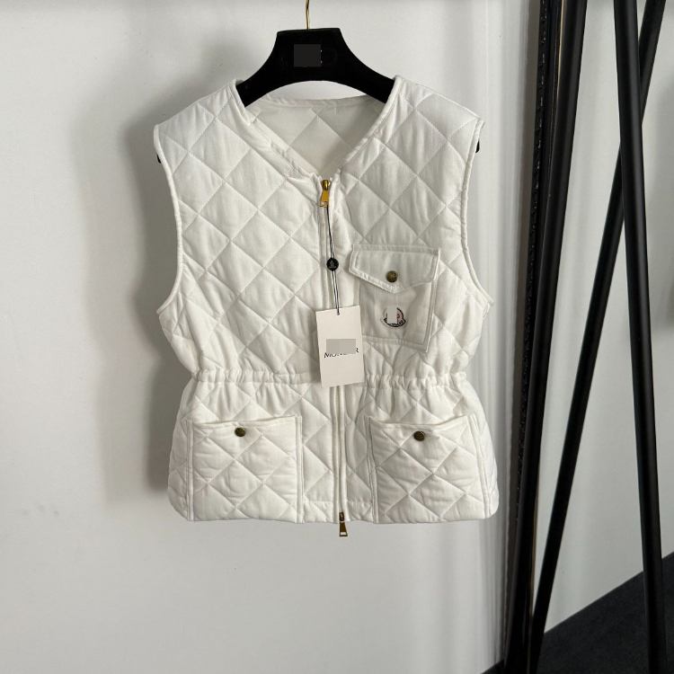 Moncler new zippered linen quilted pocket cotton vest-5415