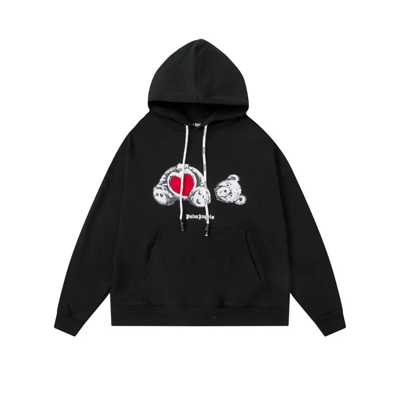 Palm Angels Broken head embroidered bear hoodie-2215