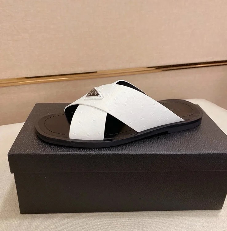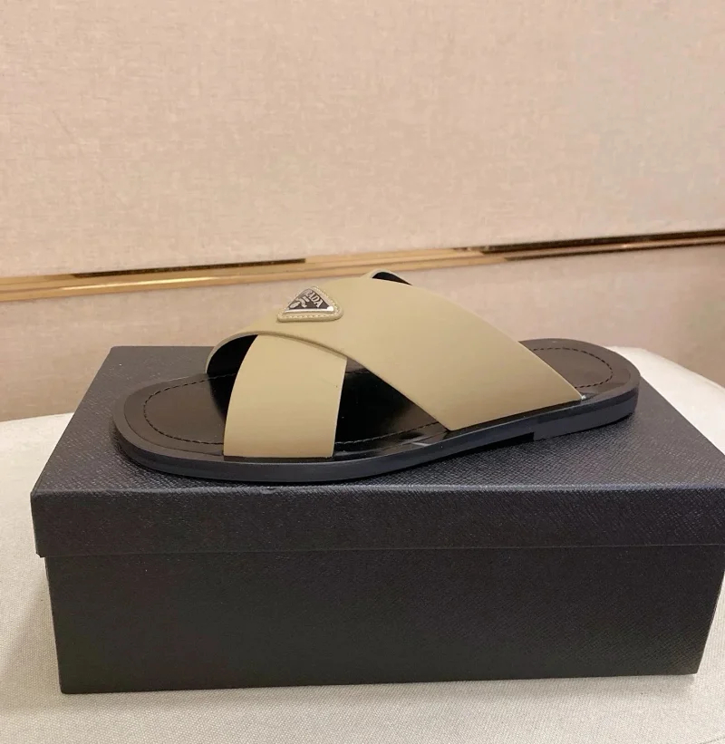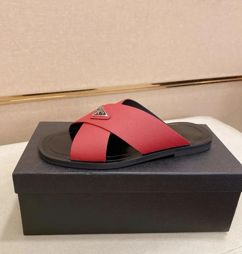 Prada Ultralight Breathable Leather Cross Slippers-5553