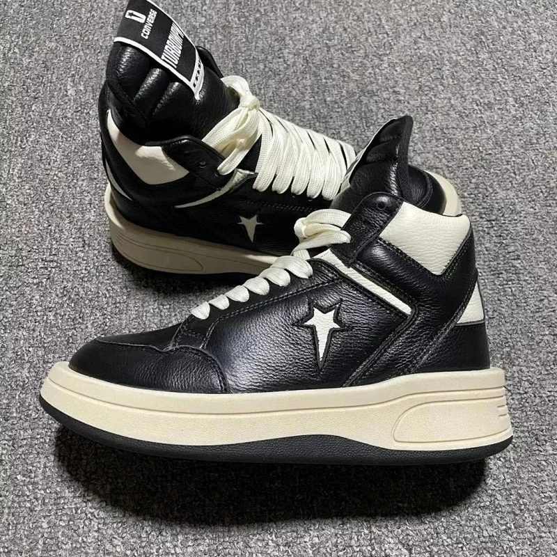 Home > RICK OWENS/RO Edfu leather semi-gloss finish high-top fashion sneakers-2945
