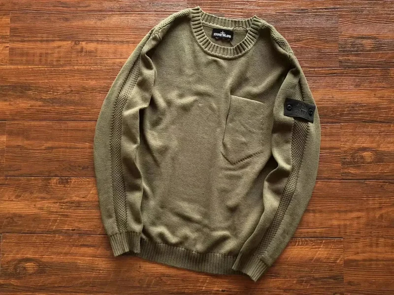 Stone Island Round Neck Badge Sweater Slim Knit Top-2119